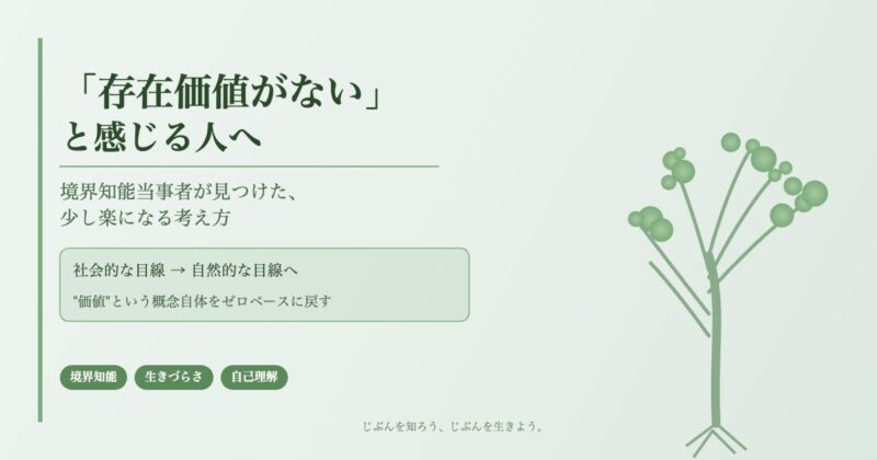 境界知能の当事者である私は、社会に出たとき排除されやすい側の人間です。できないことが多く、人より時間がかかる。「自分は社会的に価値のある人間だ」という感覚が、どうしても持てませんでした。